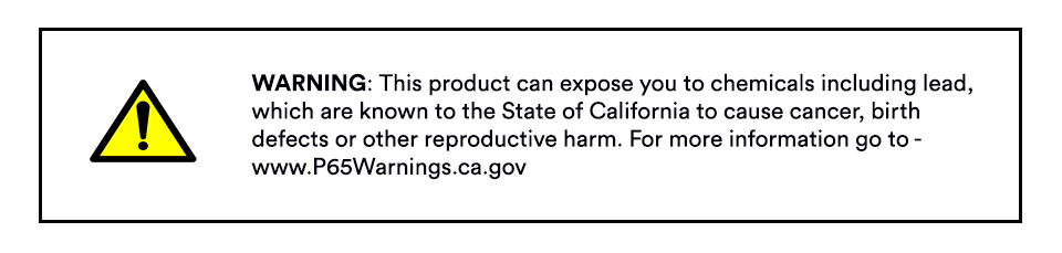 Under Prop 65, businesses like ours are required to provide “clear and reasonable” warning to Californians before exposing anyone to the chemicals included in the law. That’s why you’ll see warnings on companies’ websites and labels on their products, and in California, you might also see signs in public or retail stores.